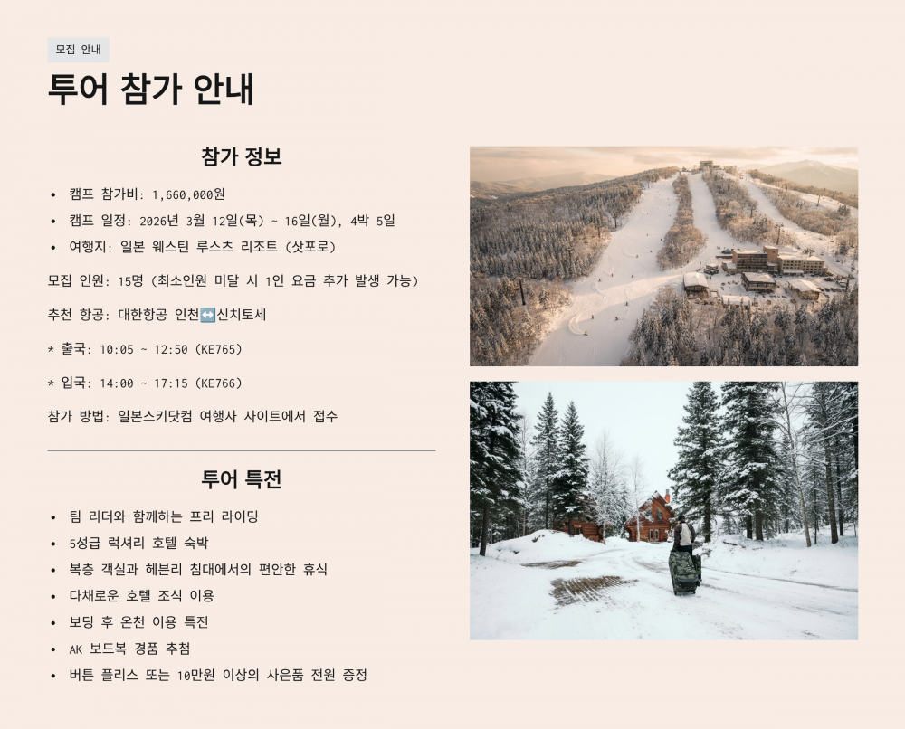 버튼 프로와 함께하는 홋카이도 파우더 라이딩 캠프