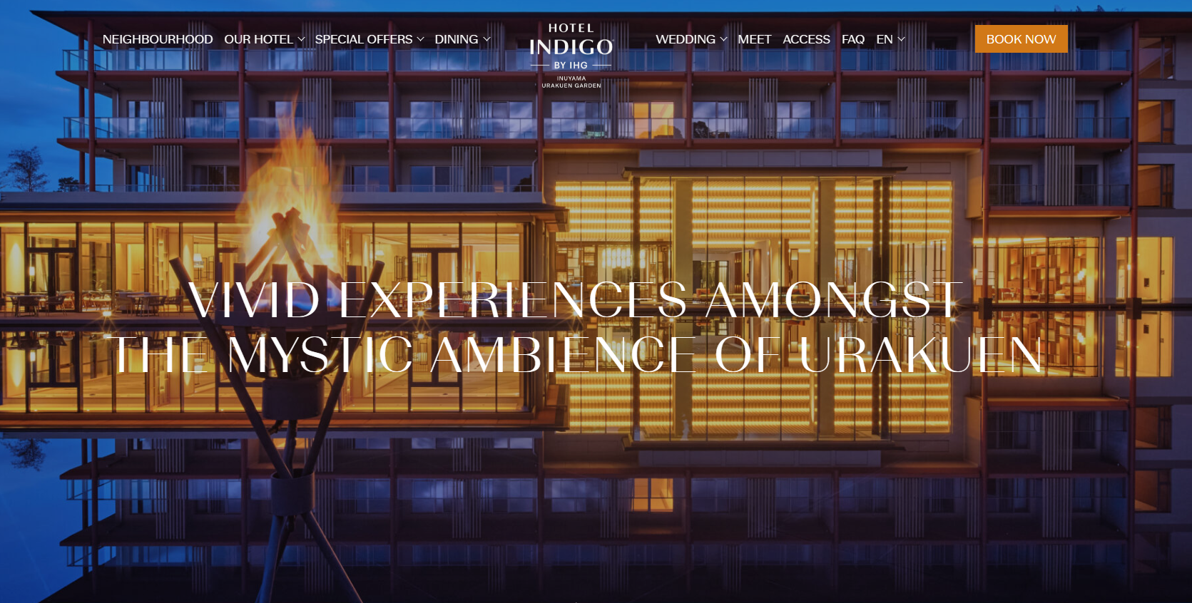 경관과 넓은 객실의 럭셔리 호텔로 숙박하는 것 만으로도 힐링이 되는 인디고 아누야마 우라쿠엔가든호텔에서 숙박합니다.